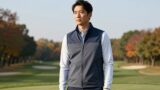 ベストは秋ゴルフで1枚持っておくと非常に便利なアイテムです。腕が自由に動くためスイングの邪魔にならず、体幹部分を効率よく温められます。