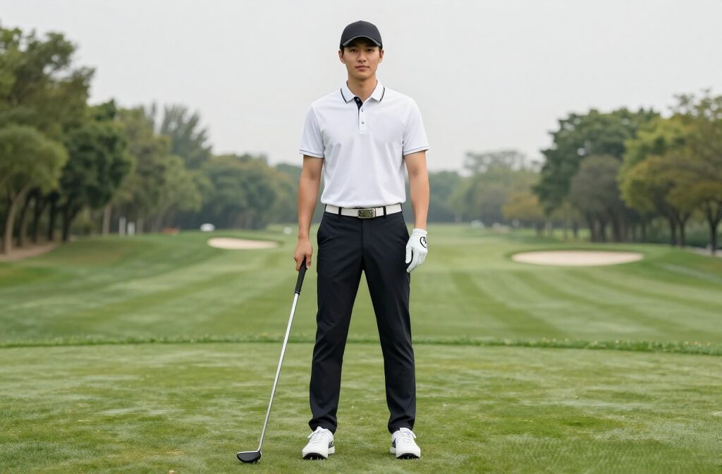 サイズ選びを間違えると、だらしなく見えたり、逆に動きにくく見える原因になります。Callawayの場合は「ややスッキリめ」を意識すると、清潔感のある印象になります。